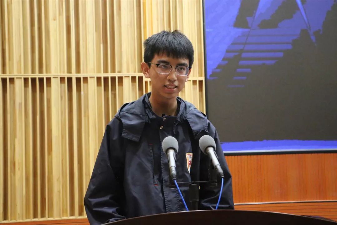 我校胡方凯同学作为获奖学生代表发言,表达了对学校和老师们的感恩。