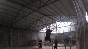 (图为当天马戏表演的两只老虎中幸存的一只)