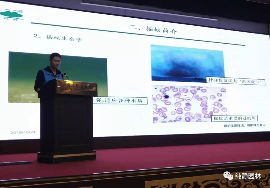 纯静园林陈总在研讨会上进行了关于园林有害生物绿色防控的学术交流,将纯静园林有害生物绿色防控的六大模块一一阐述,获得了与会人员的一致好评。朋康经理则代表纯静园林分享了摇蚊绿色防控技术这一主题,汇报了纯静园林在摇蚊绿色防控方面的最新技术进展和相关案例。