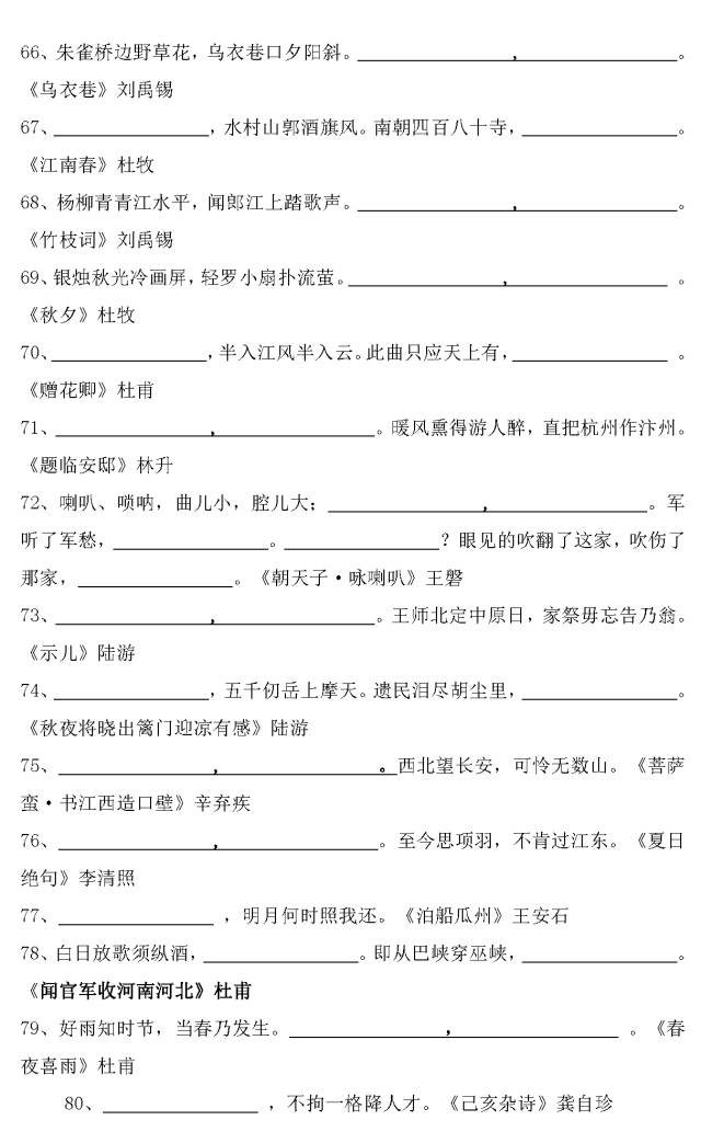 背诵时常有这种情况,一些本来记得很熟的诗,突然在某个环节上卡壳。这时如果有人提示一下领头字(或词),就会很快地接上。这说明每句诗的领头字,都具有诱发思维、帮助记忆的作用。所以,要下功夫尽可能将它记牢。