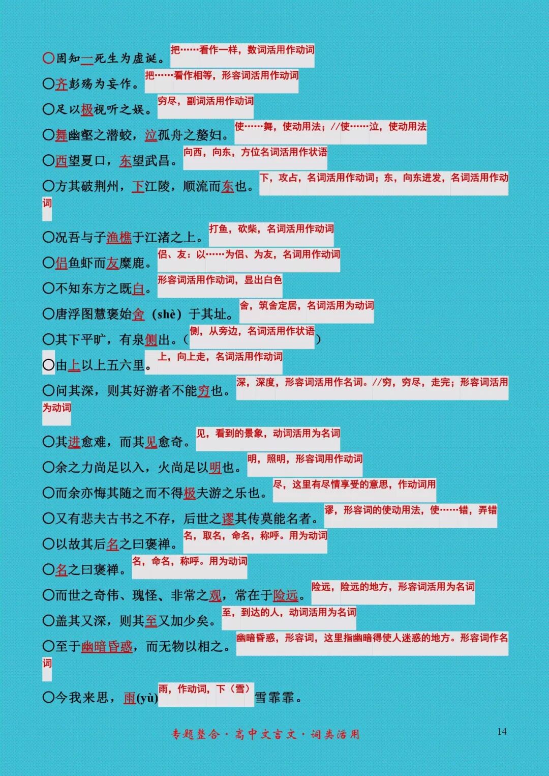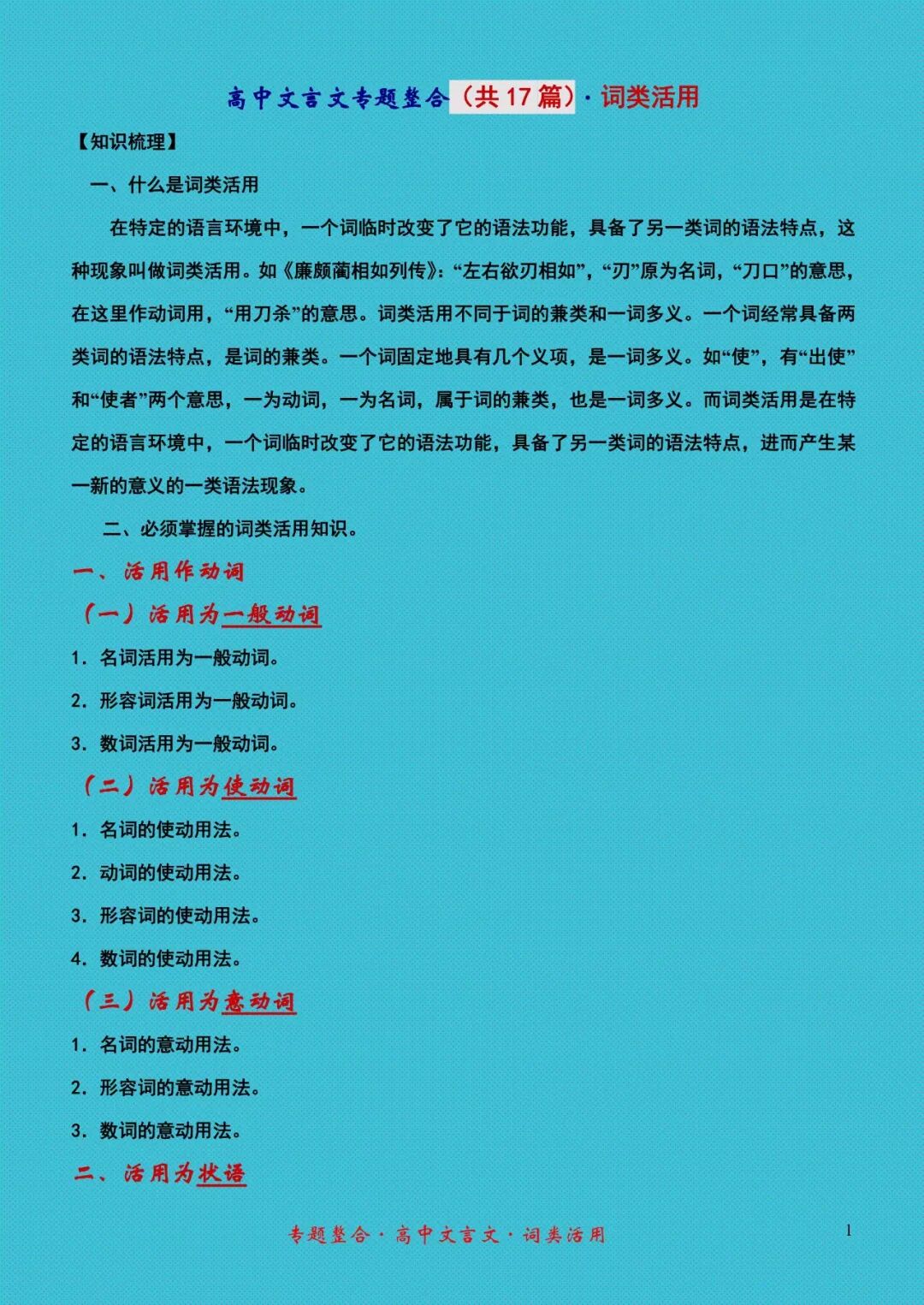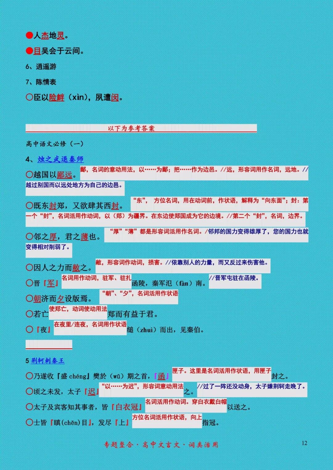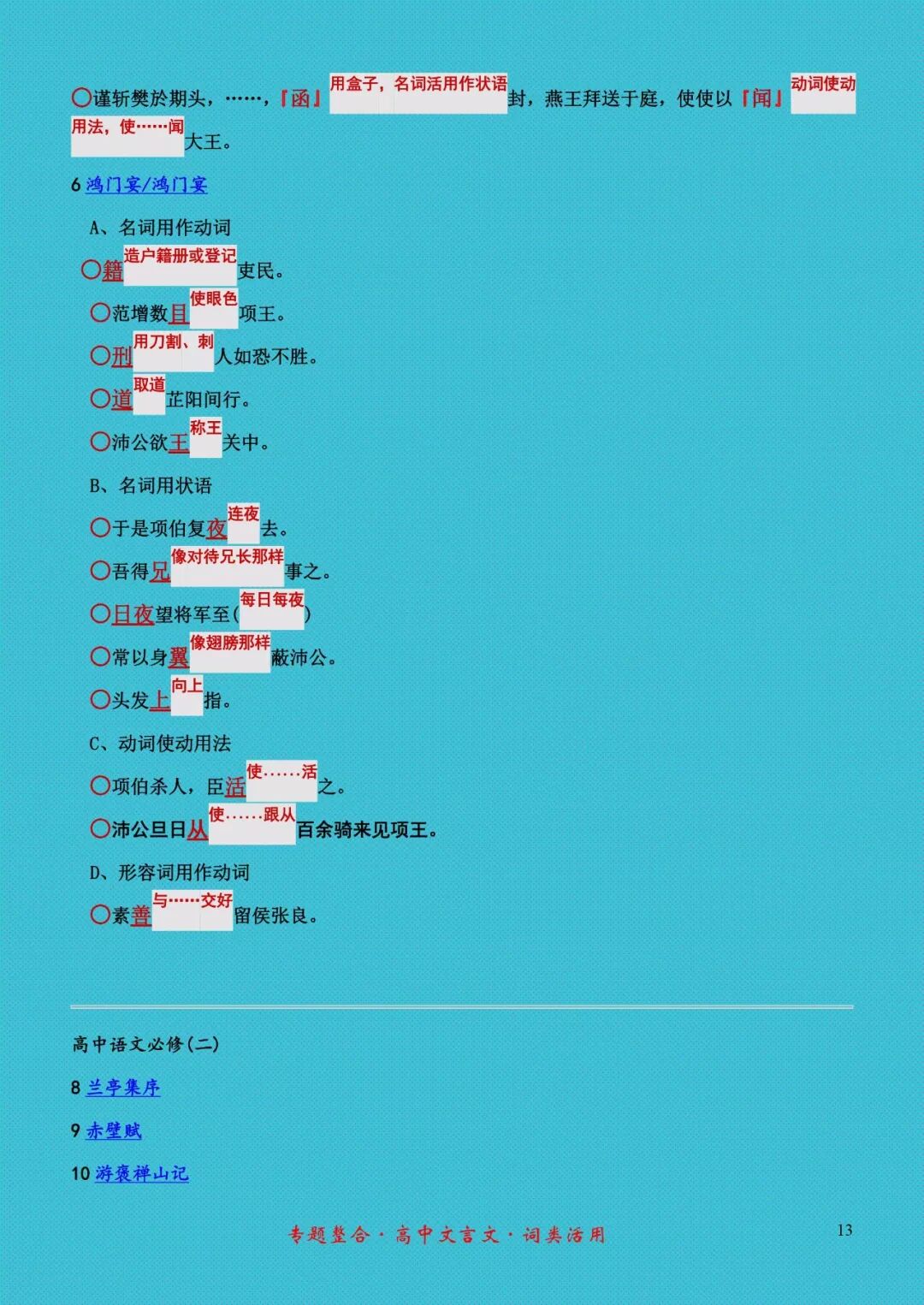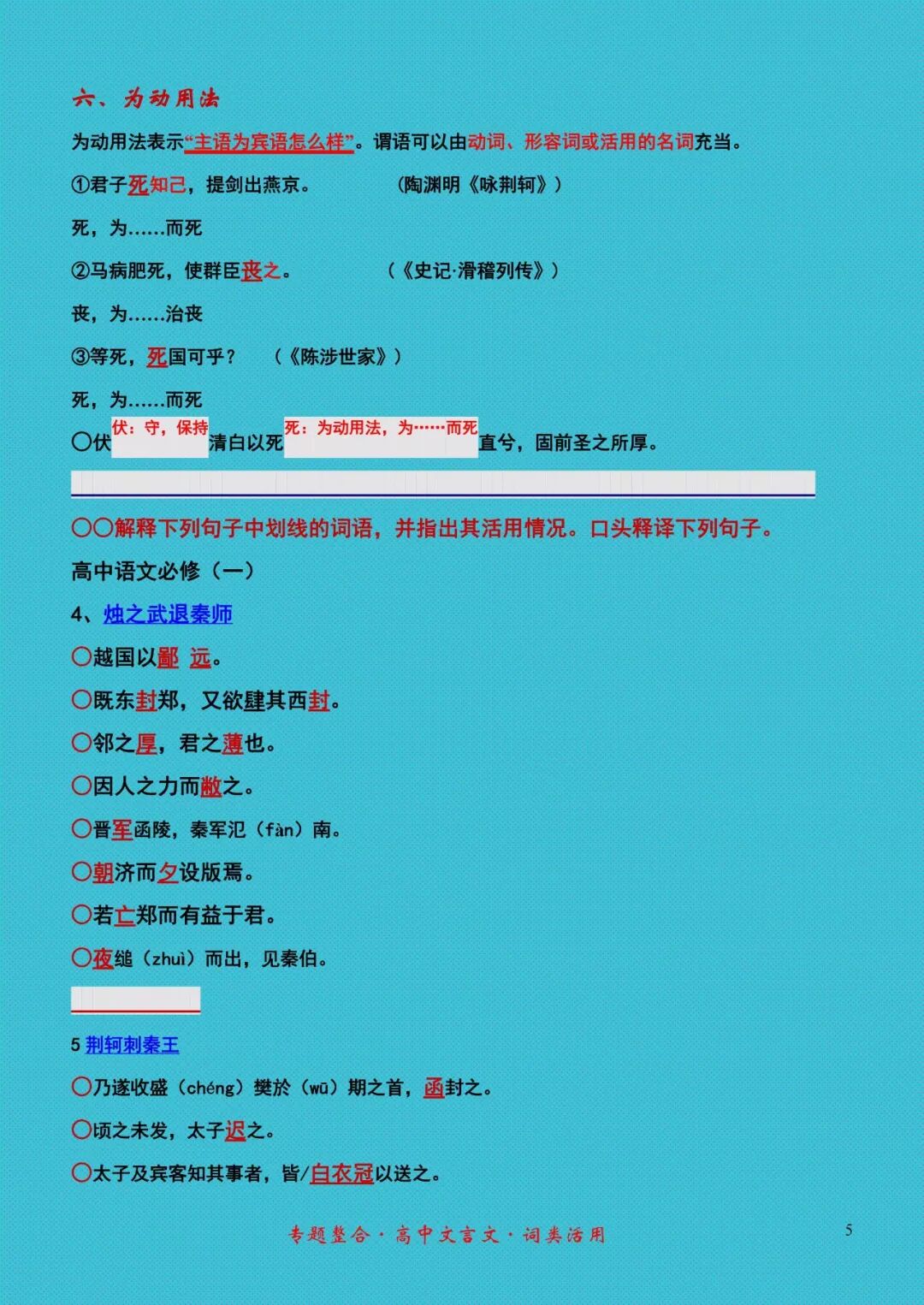 高中语文课本所有文言文专题整合之词类活用,太全了,不看后悔
