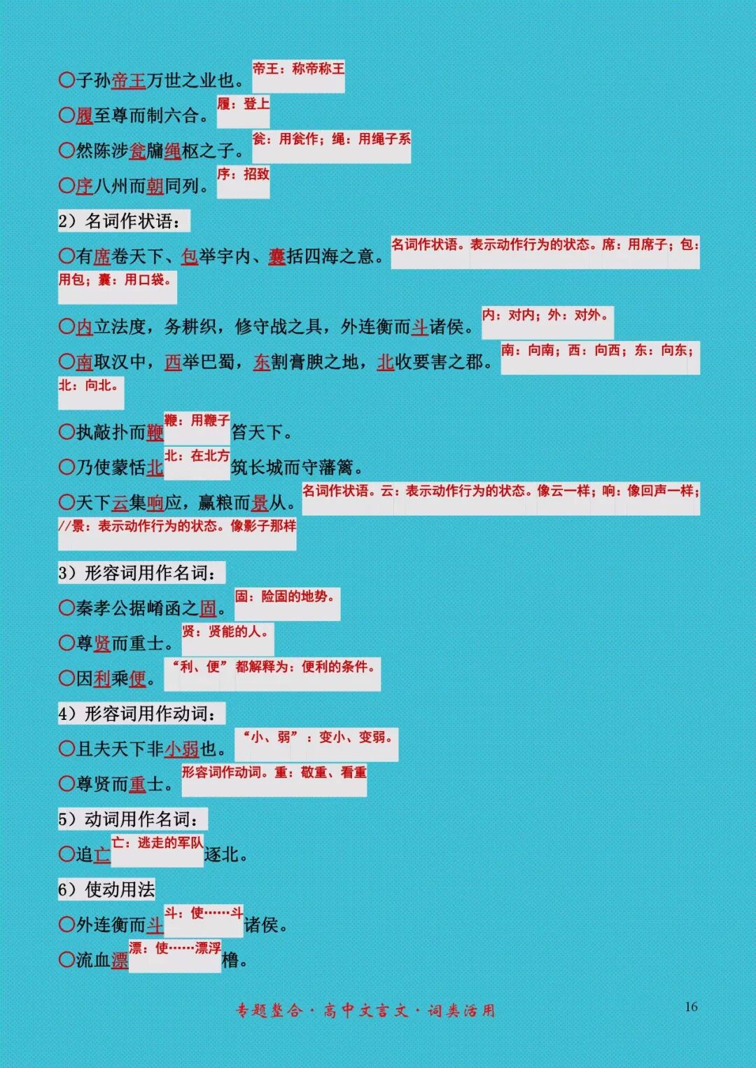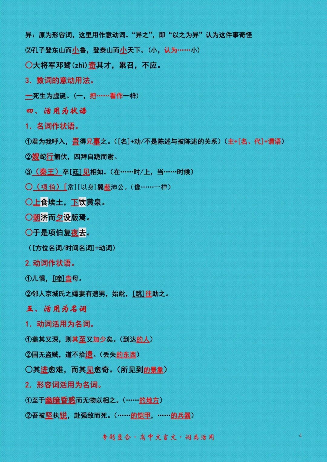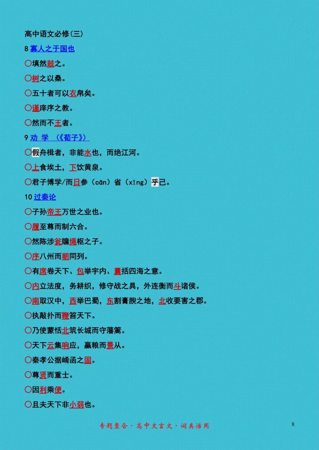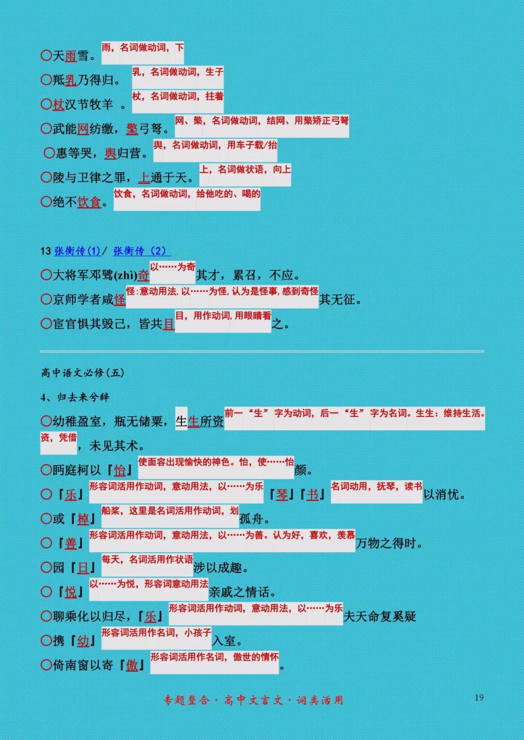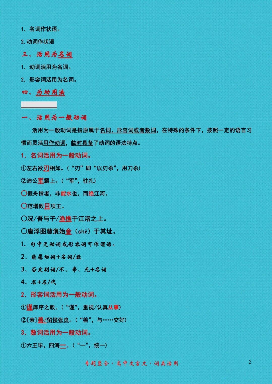 高中语文课本所有文言文专题整合之词类活用,太全了,不看后悔