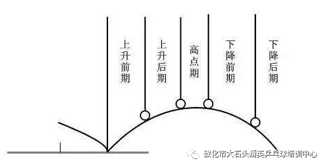 上升期:球从台面反弹上升到接近最高点的这一段时间,称为上升期。这段时间又可分为上升前期和上升后。