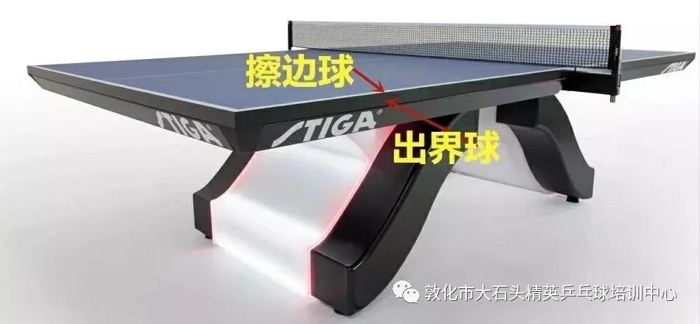 八,擦边球。球触及台面上边缘是擦边球,触及球台侧面是出界球。