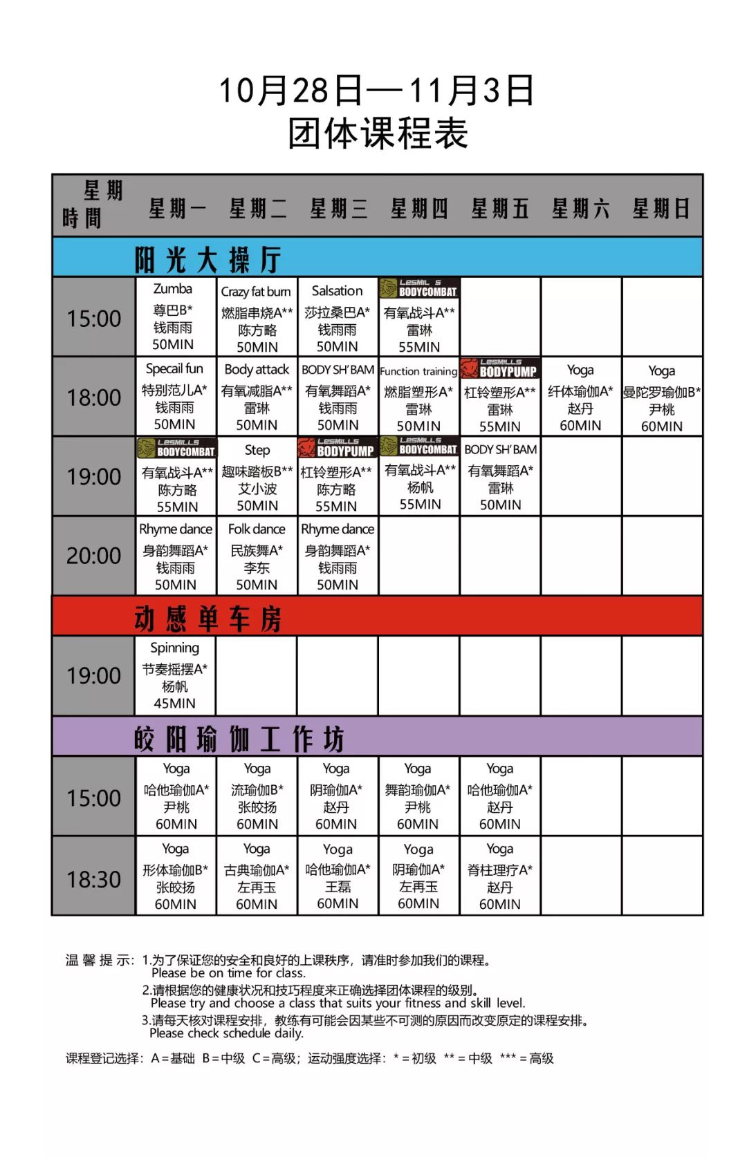 本周四陈方略教练将赴上海参加2019莱美盛典,因此,本周四和周五的团体课程将由雷琳教练代上。
