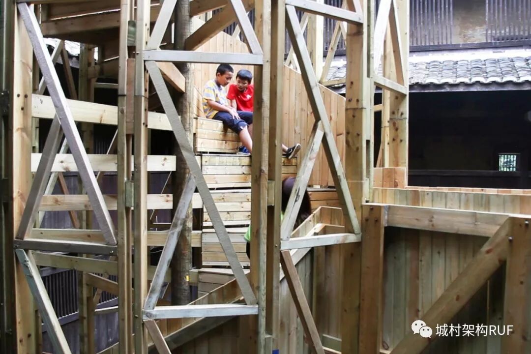 作为赛马会-香港大学城村设计项目的一部分,城村架构对插件和塔的方案进行设计,并邀请学生和木匠在中国福建的蓝田村合作进行了建造。来自香港大学和香港知专设计学院的学生们,与木匠一起学习传统木工艺,并和当地村民探讨土楼面对城市化时所面临的挑战。