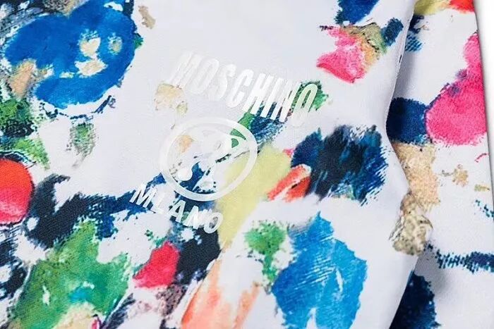 胸前简约大气的MOSCHINO印花,满印彩色设计,
