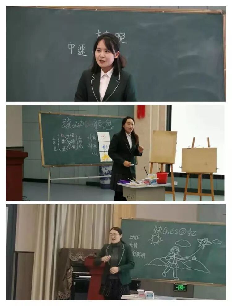 音乐老师陈莹用优美的旋律引导学生在美妙的歌声中感受乡村的美景,培养学生热爱生活、热爱大自然。姚美岑老师《快乐的回忆》,通过和学生们一起回忆日常生活中快乐的小事,引导学生尝试运用不同的材料和表现方法来呈现画面,画面层次更多样、更丰富。王菁蓓老师《流动的颜色》,运用颜料流动的特性,让学生们滴流吹的方法使颜色流动起来,使纸上呈现颜料自然流动留下的图案,进而进行添画,充满趣味。