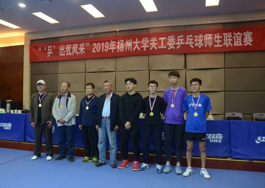 这是我第一次参加扬州大学师生乒乓球联谊比赛,这次比赛不仅锻炼了老师和学生们的身体素质,同时也拉近了师生情谊。让我进一步了解了关工委和校学生会两个组织,也正因为这两个组织通力合作,比赛才能圆满顺利地结束。通过这个比赛,我也领教了关工委老师们的乒乓球水平,他们的球技并没有受到年龄的影响,老师们在赛场上认真投入的精神和态度令我非常尊敬,同时再一次感谢作为工作人员的同学们帮忙,给我们创造了一次这么好的切磋交流机会。