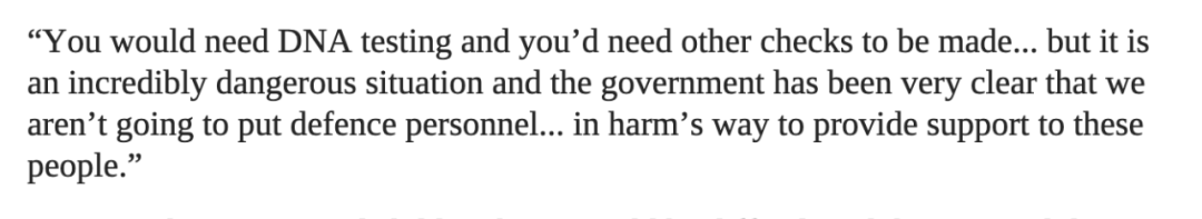 我们不会让我们的国防人员冒险跑去救这些人。”