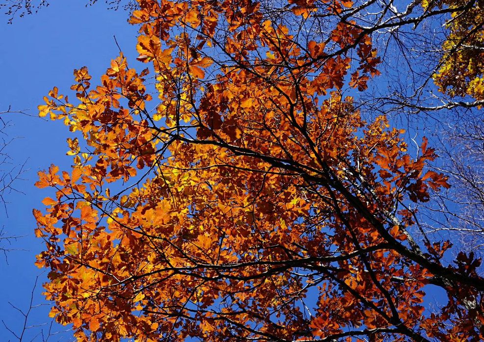 金秋的七色神笔,把雾灵山茫茫林海涂抹得绚丽多彩。深橙的黄栌,浅黄的椴叶,如火的枫叶,殷红的野果,加上蓝天、白云、雪峰、碧水和充满笑容的游人,让雾灵山满谷是图,满山是画。深秋的雾灵山秋雨连绵,昼夜温差增大,茂密的森林被早霜染成五颜六色,“霜叶红于二月花”,堪称北方秋色之最。 需要提醒的是,雾灵山10月15日就封山了,想去看红叶只有本周末了。