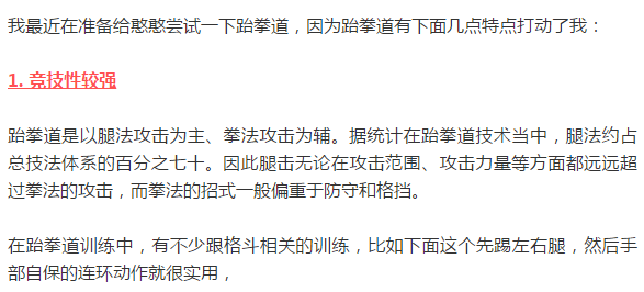 所以,有了跆拳道的速度和力量的基础,将来从事别的体育运动会事半功倍。