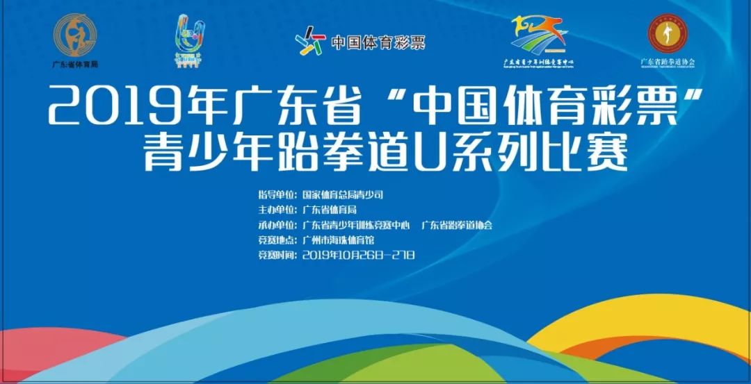 2019年广东省“中国体育彩票”青少年跆拳道U系列赛于2019年10月26日-27日在广州市海珠体育馆开赛。