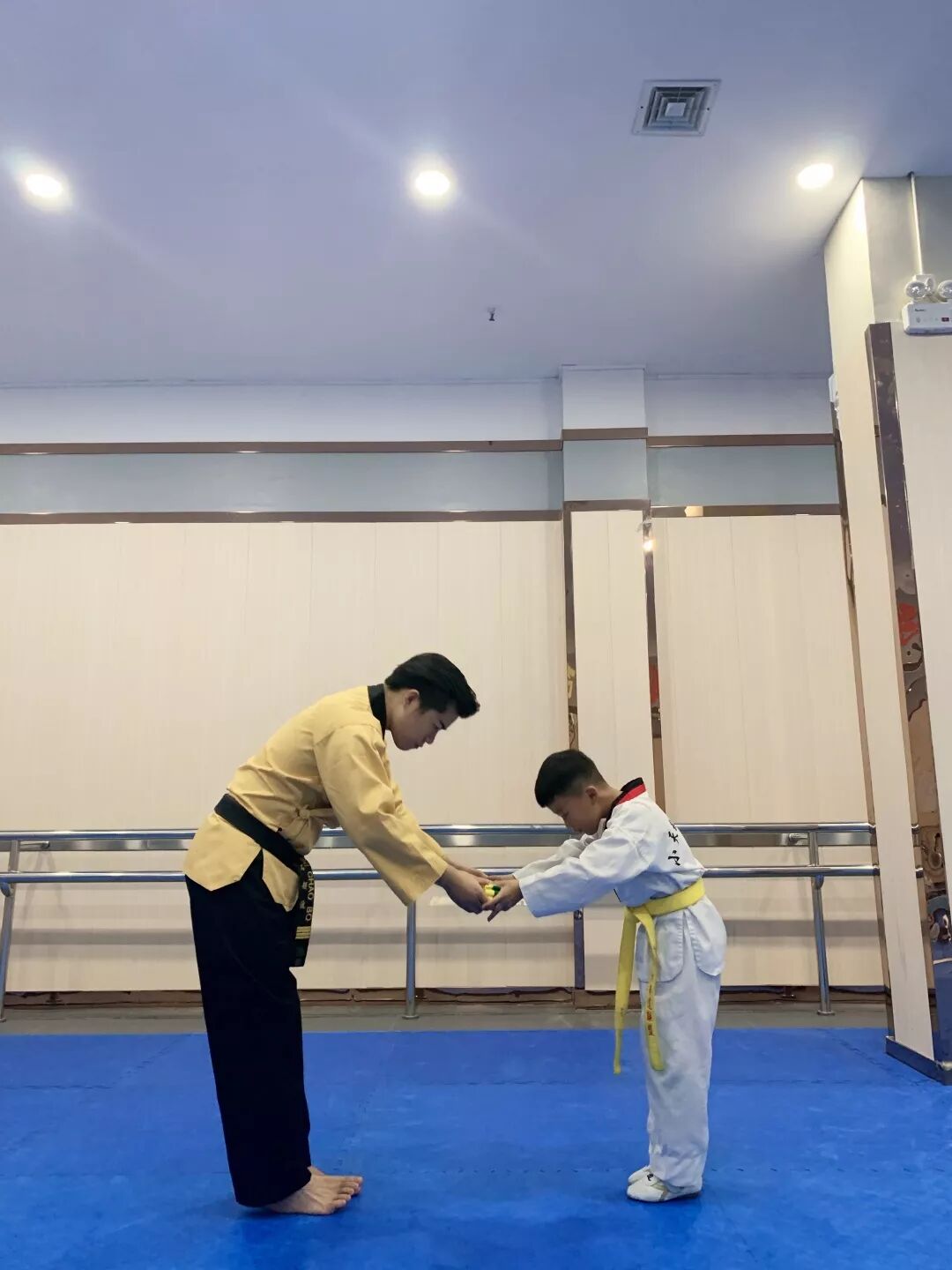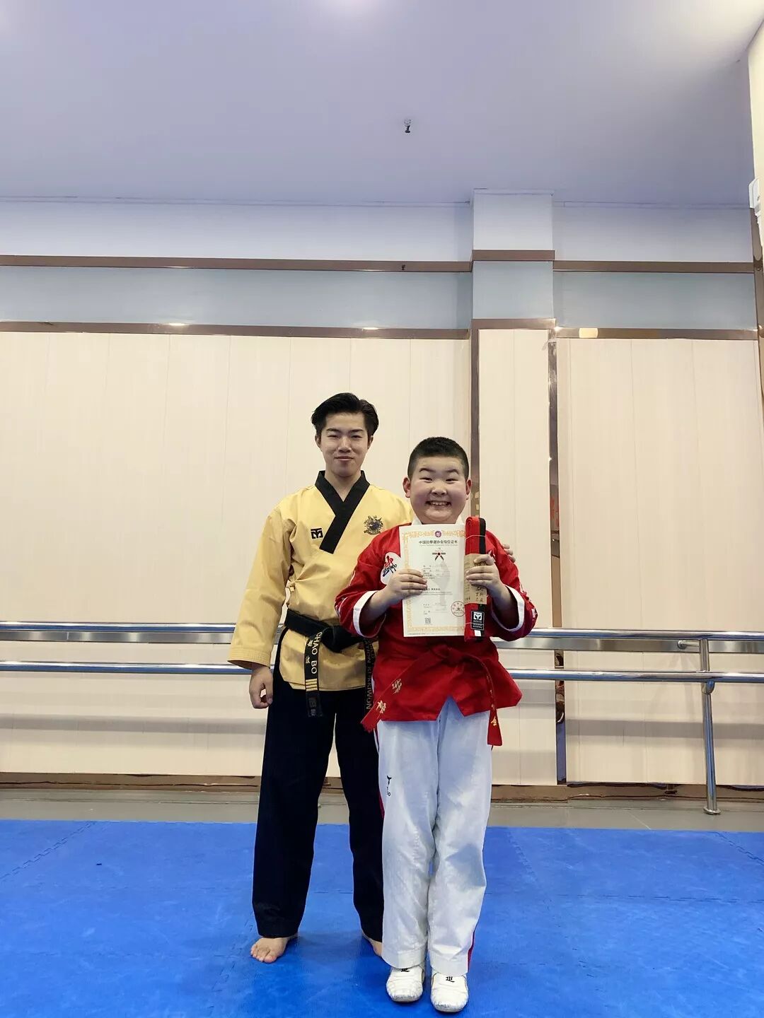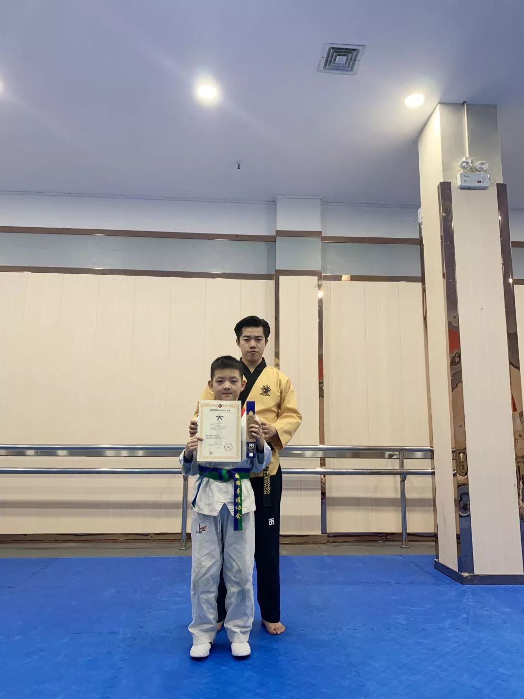 孩子们经历了汗水和艰苦,他们选择了努力与坚持,经受住了考验,参加考试,经过了严格的考核,达到考级规定的动作标准,顺利通过了跆拳道的晋级考试,拿到了属于自己的跆拳道晋级证书和腰带!