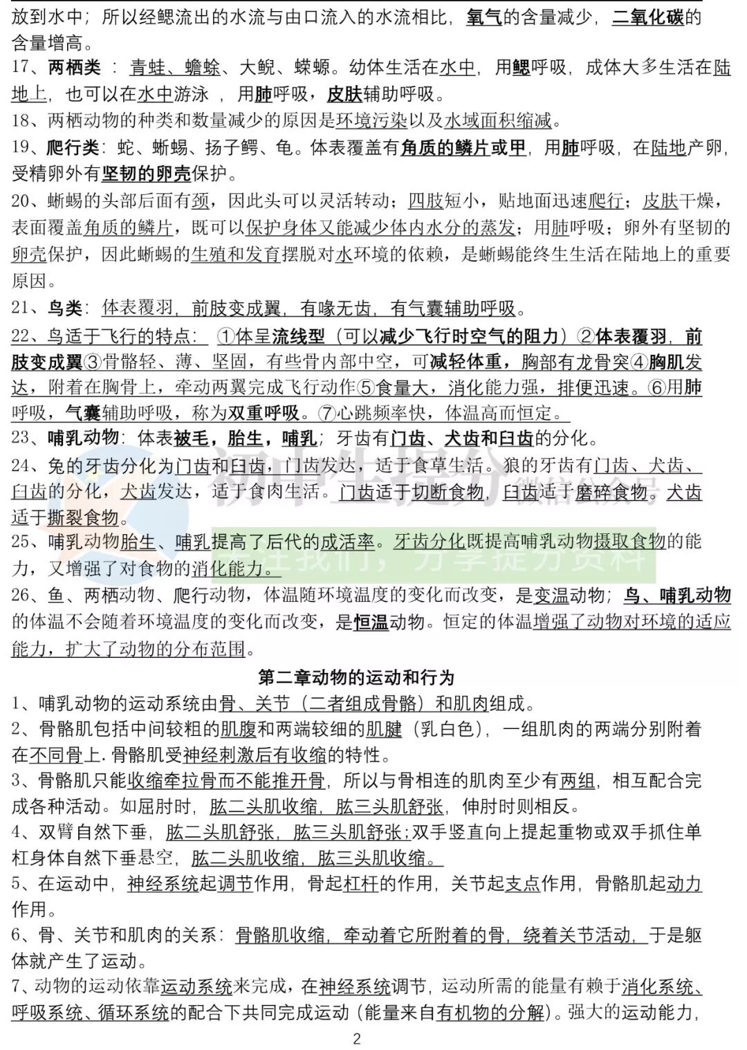 今天送给大家的是八年级生物(人教版)上册期中考试重点知识清单。