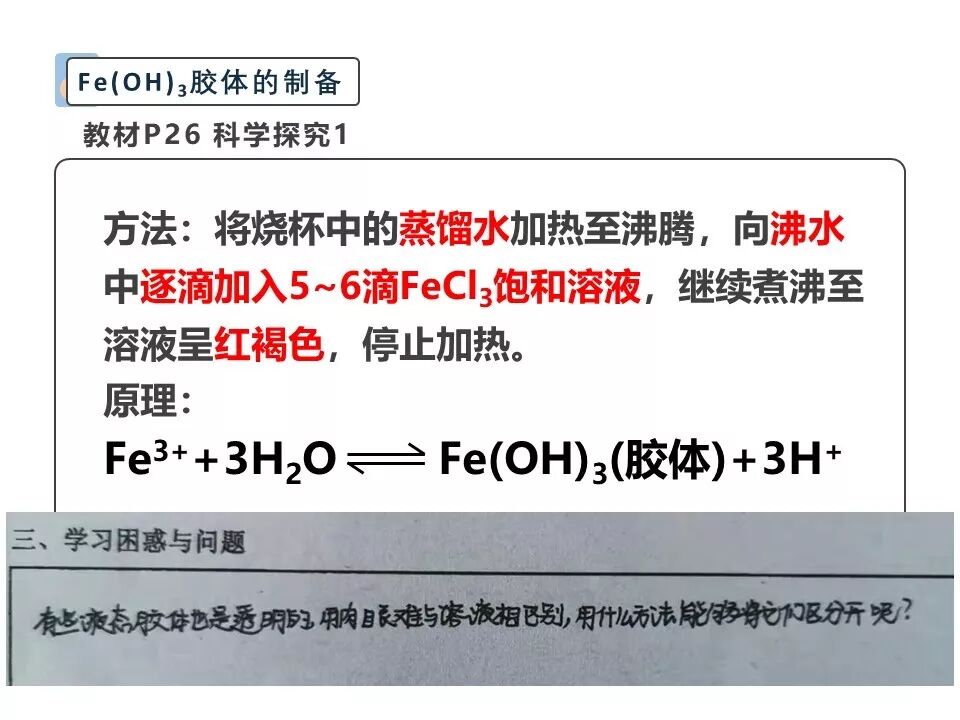 04 课堂上进行教师演示实验,制备氢氧化铁胶体,强调制备胶体的注意事项。
