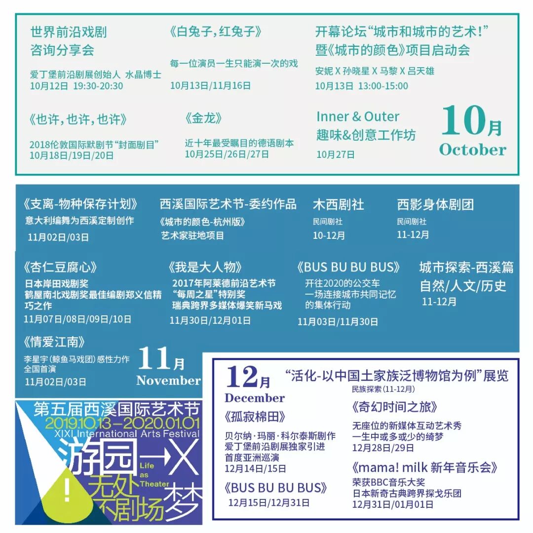 12月12月1日 [ 潮汐力 Tidal Pro.1 ] She Her Her Hers / 告五人 / I Mean Us / Future Orients / Kirin Trio / Loft Beach12月3日 Tokyo Shoegazer x 缺省 联合巡演杭州站12月4日 Ayasa Theater I 2019冬季巡回演奏会 杭州站12月5日 Gatsby in a Daze(晕盖)2019巡演 杭州站12月6日 岸部真明 Masaaki Kishibe 中国演奏会 杭州站