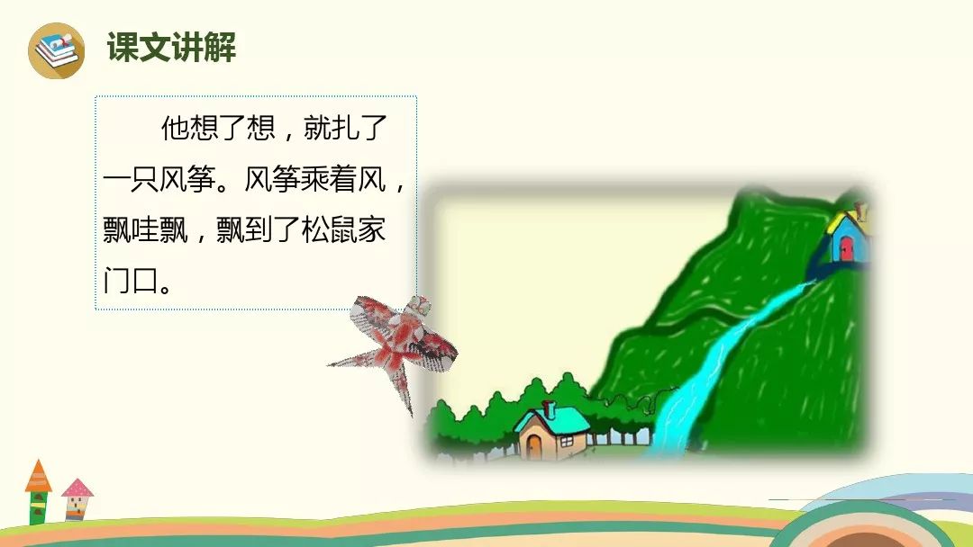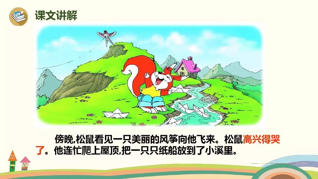 4.傍晚,松鼠看见一只美丽的风筝朝他飞来,高兴得哭了。