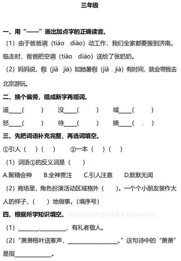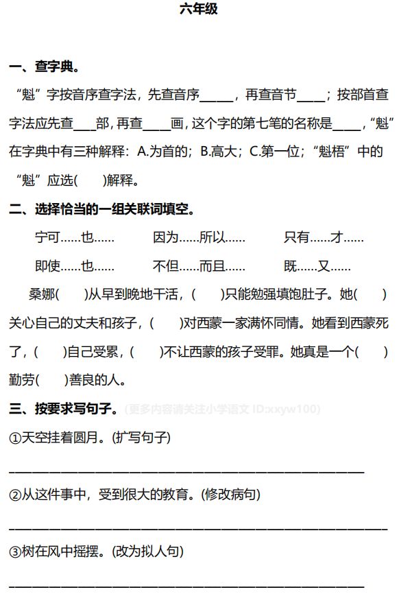 小学1-6年级语文知识每日一练,含答案!(建议打印)