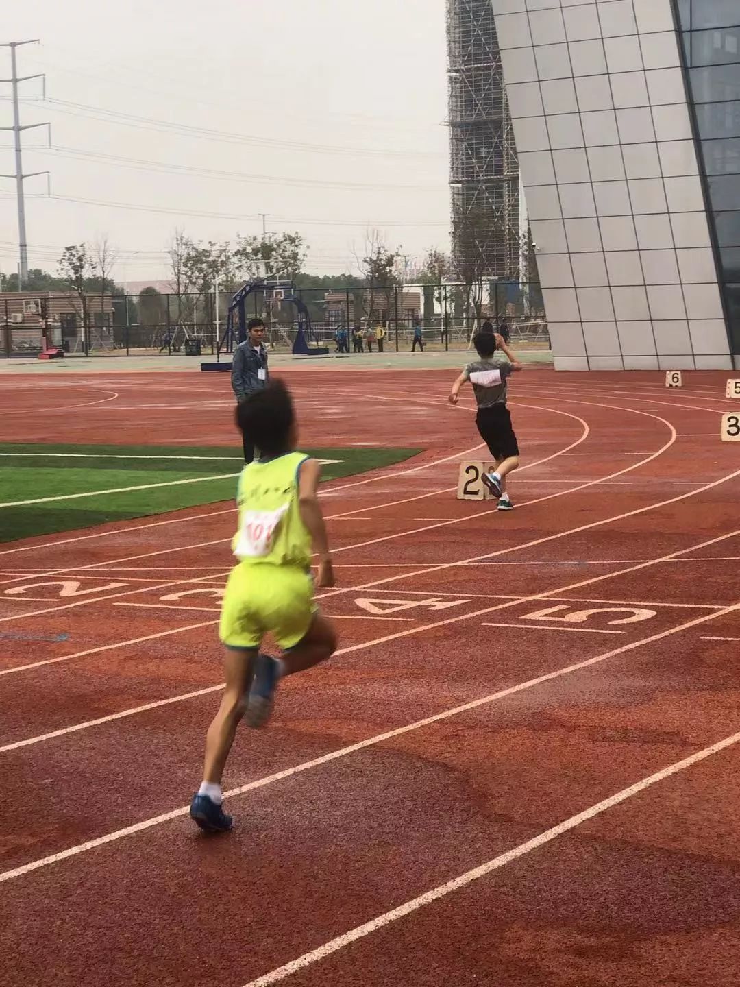 在接下来的男子200米决赛中,黄金荣同学更是斗志昂扬,以小组第一获得第七名。