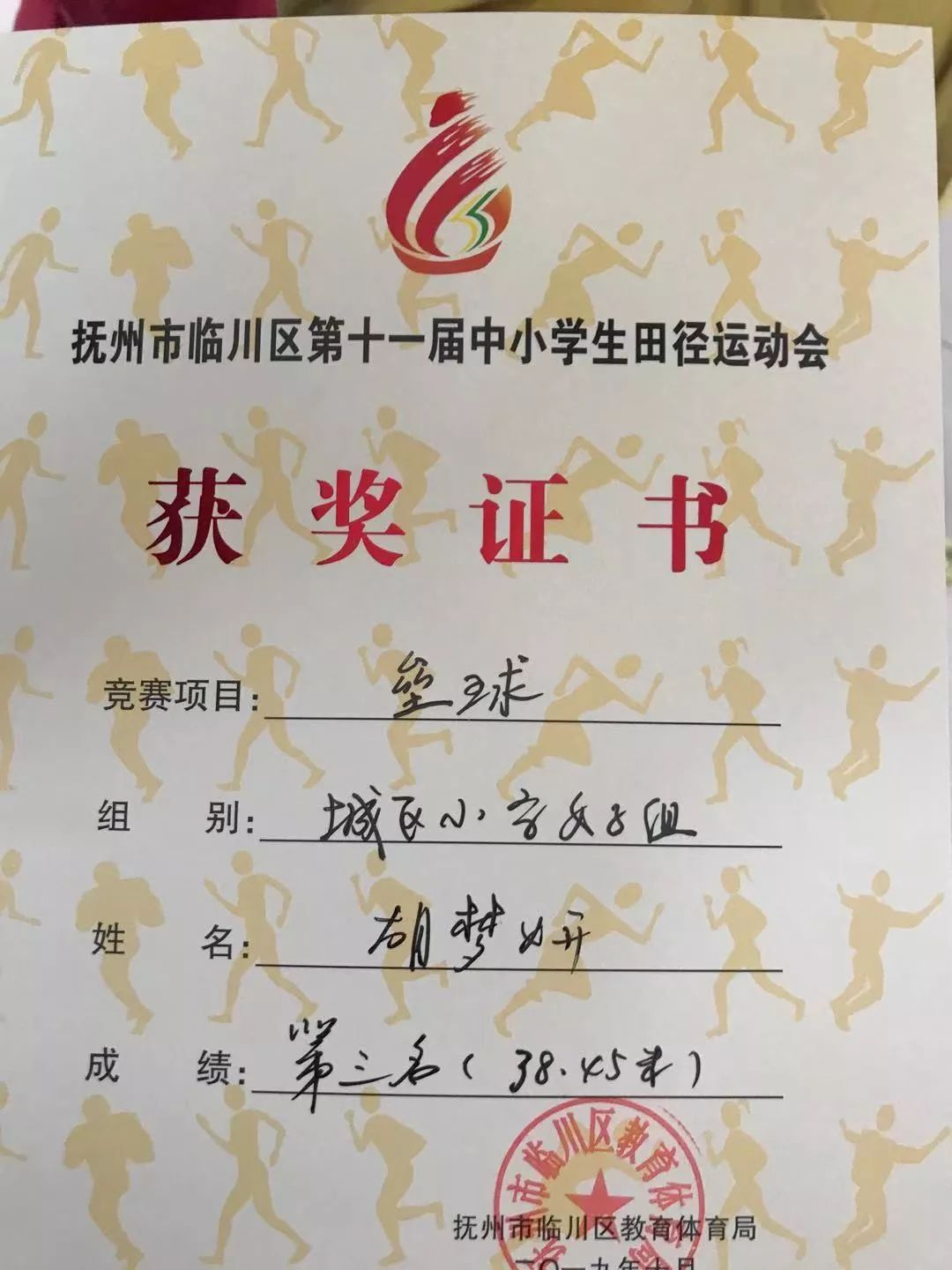 在女子垒球中,我校胡梦妍同学以38.45米的成绩荣获季军。