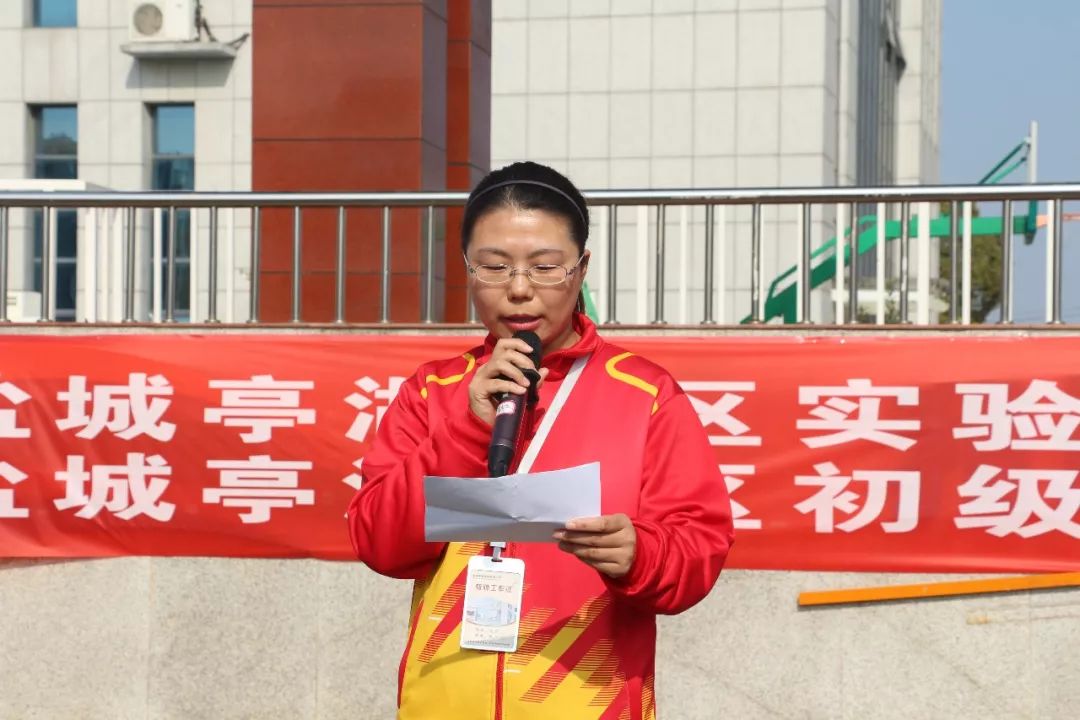 裁判员代表老师宣誓,她向全体师生表明裁判组全体成员会本着“公平、公正、公开”的态度完成裁判工作。
