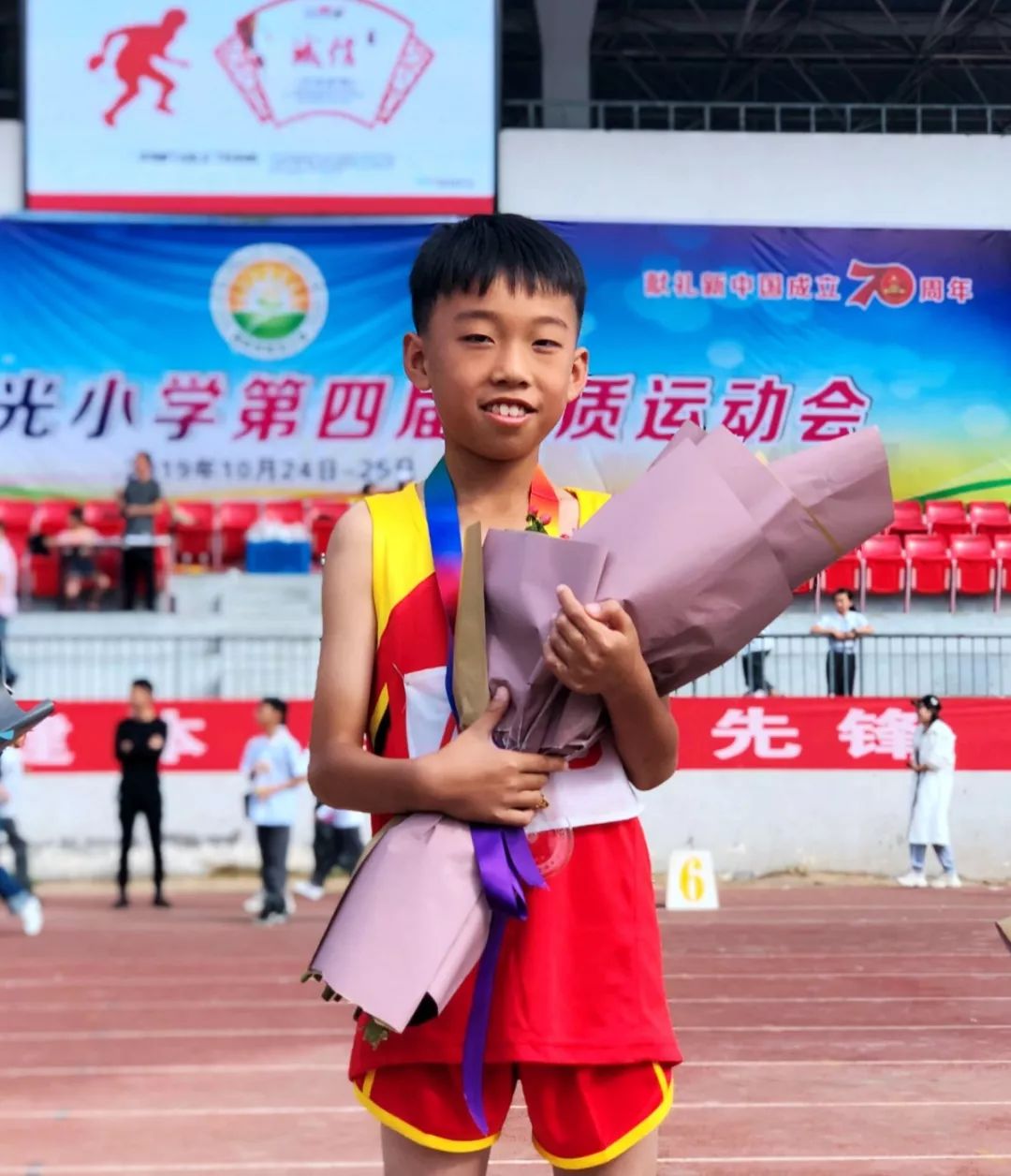 跑完60米决赛,紧接着400米决赛的小小勇士!