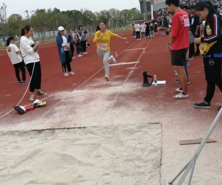 虽然三级跳徐鸿萍仅差几厘米之差错失名次,但我们相信,你的精神必定能激励着我们奋发前行!十四班,加油!
