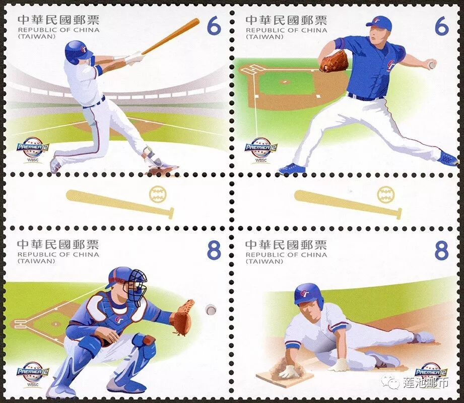 邮票采4枚联刷设计,面值6元和8元各2枚,背景以棒球场为设计,主图以身着中华队制服的棒球员,分别呈现棒球运动之打击、投手、捕手及滑垒之「力」与「美」画面,并搭配WBSC世界12强棒球锦标赛标志,上下邮票间以棒球及球棒为过桥图案。