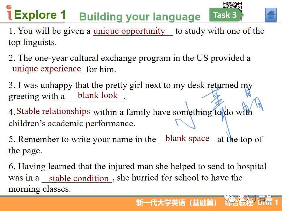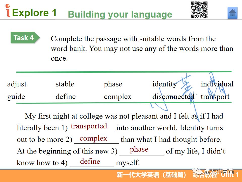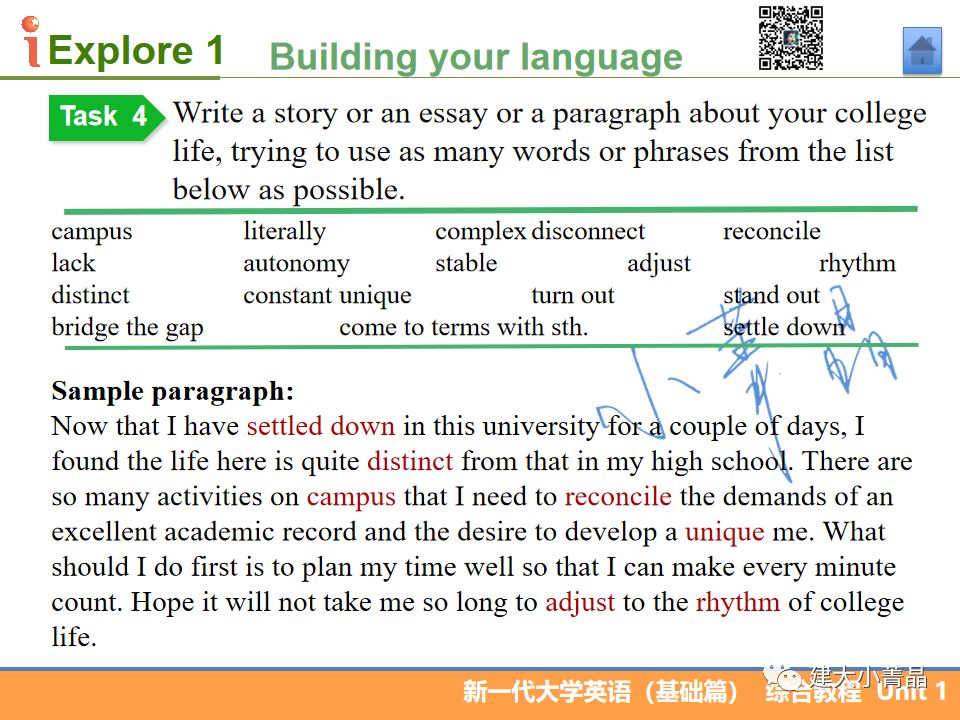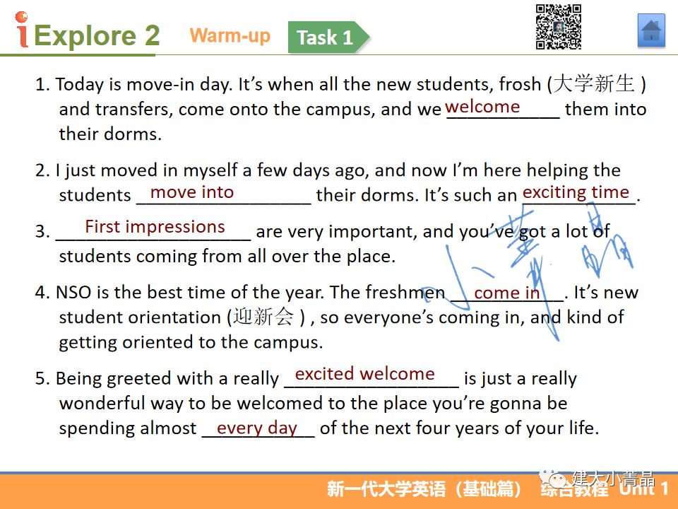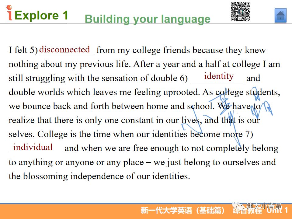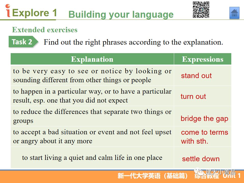 新一代大学英语(基础篇)综合教程1 Unit 1