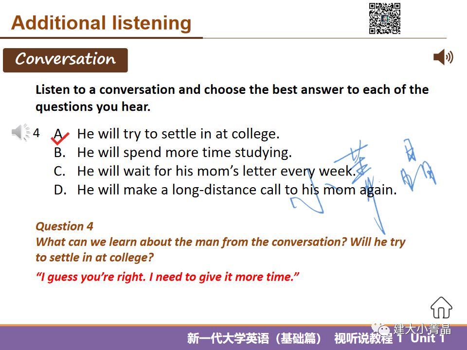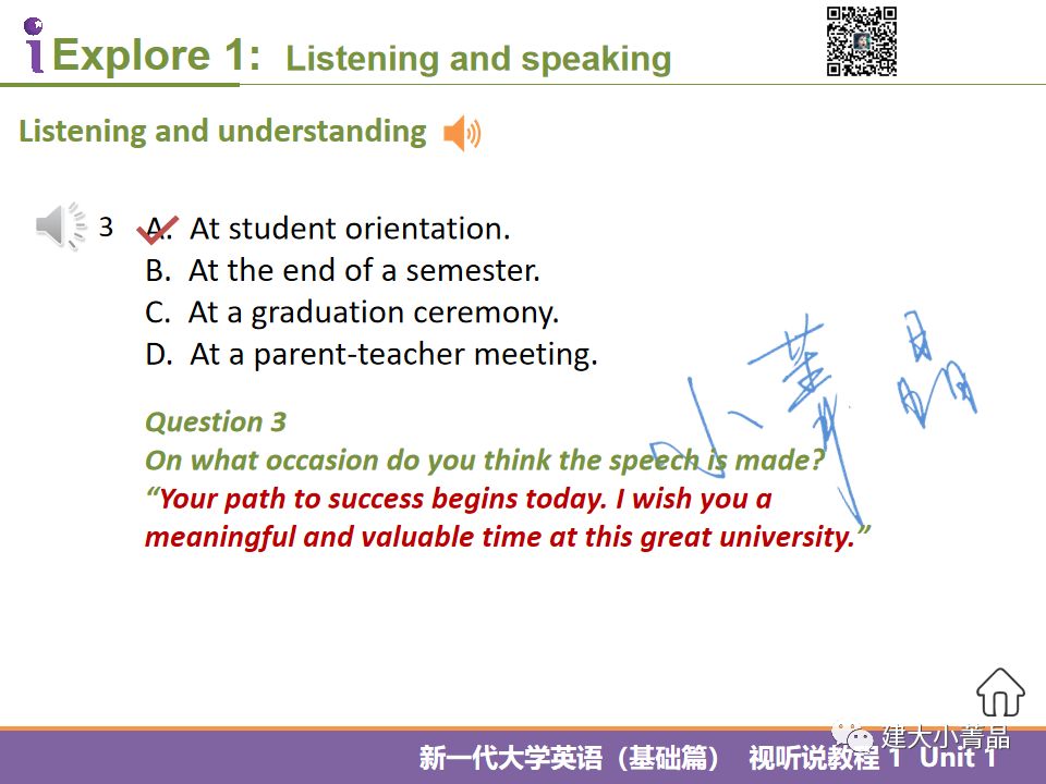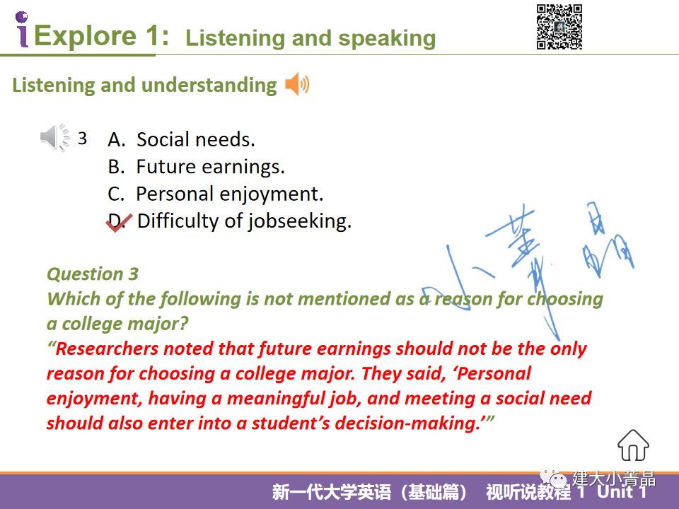 新一代大学英语(基础篇)视听说教程1 Unit 3