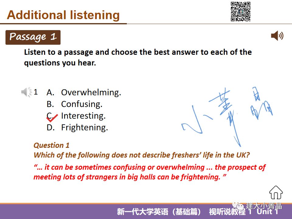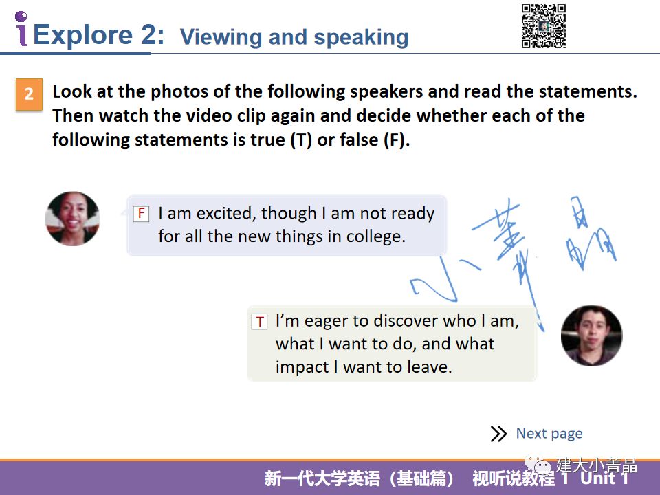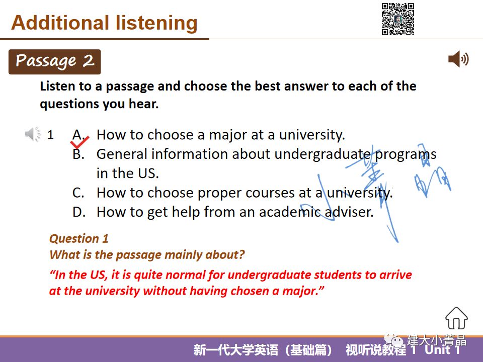 新一代大学英语(基础篇)视听说教程1 Unit 1