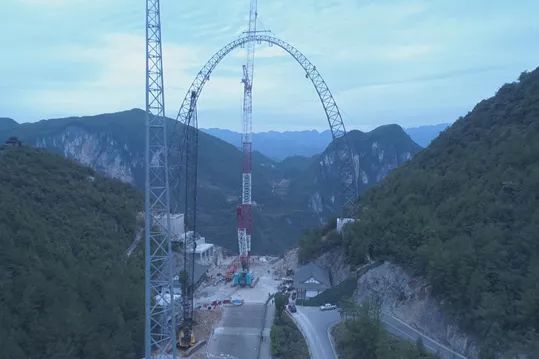 超级大秋千位于龙缸景区海拔1100多米的猴子垭口,建在距离石笋河河面将近700米高的悬崖边缘。当天上午,随着拱形塔的正式合拢,宣告龙缸景区悬崖秋千正式建成。