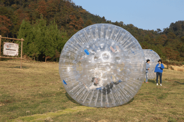 充气碰碰球采用环保、高弹的透明材料,有安全背带和辅助手柄,由多个气舱组成,保障安全。穿着碰碰球就像一个企鹅一样呆萌可爱,在相互碰撞中,感受欢声笑语。