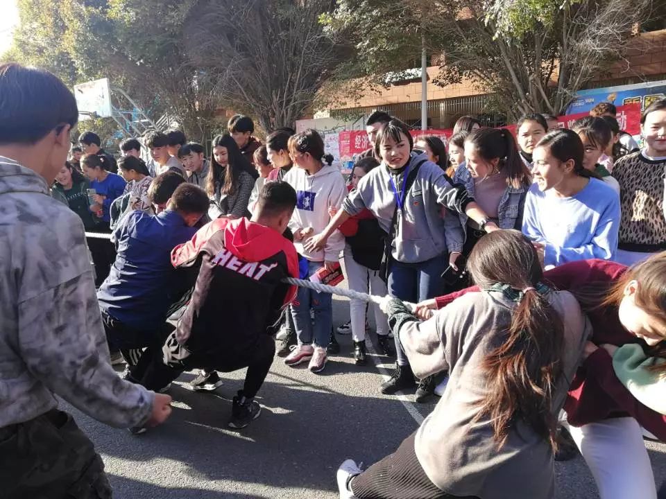 2019年 10月27 日中午15:00左右,新疆大学经济与管理学院大一、大二在校生及结对老师在北校区西苑篮球场共同参加拔河比赛,同学们热情积极,青春洋溢,奋力拼搏,老师与同学更是携手共进。