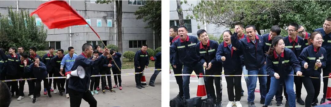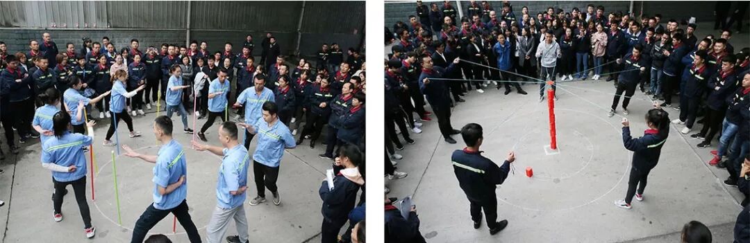 欢乐于员工拓展运动中,大家配合默契,齐心协力,你追我赶的逗趣情景;