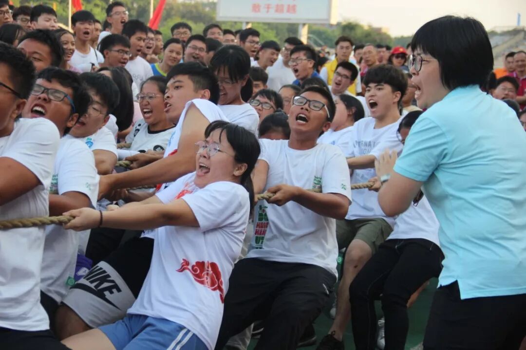 校运会上所有项目大家都竭尽全力、奋力拼搏。需要默契配合、相互协调的接力赛;考验耐力和持久力的长跑和爆发力十足的短跑;竞技技巧十足的跳高、跳远;携手共进、充满乐趣的团队百人拔河、隔岸取水、同心鼓击球、以及财运滚滚等等。