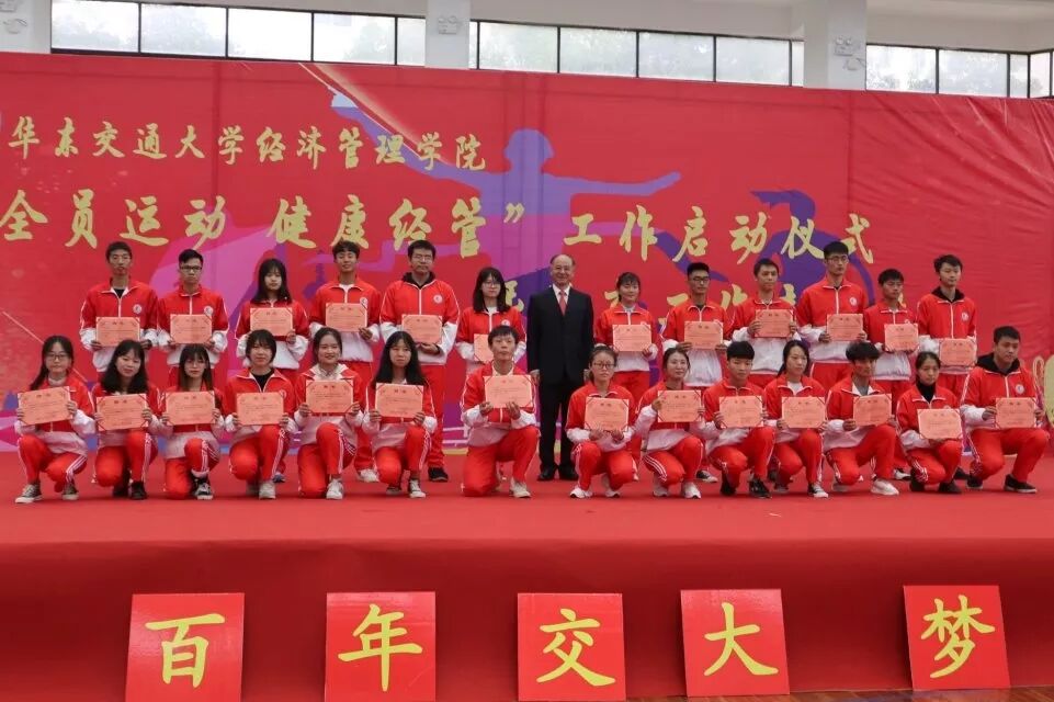为响应学校“阳光体育运动”的号召,10月26日上午,我院于CUBA球馆举行2019年经济管理学院“全员运动,健康经管”工作启动仪式暨体育工作表彰大会。校党委书记万明、体育与健康学院院长王志斌、体育与健康学院党委书记李梁华、经管学院党委书记胡桃元、经管学院党委副书记田玉兰、经管学院院长助理周才云出席会议,本次大会由院党委委员、学工办主任兼团委书记刘修财主持。
