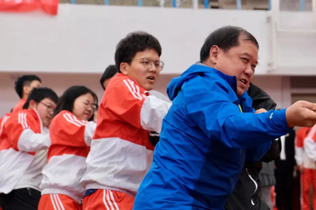 同时为了响应体育运动的主题,大会期间还进行了师生趣味拔河比赛,传递团结拼搏的体育精神,各专业辅导员及学院同学积极参加。