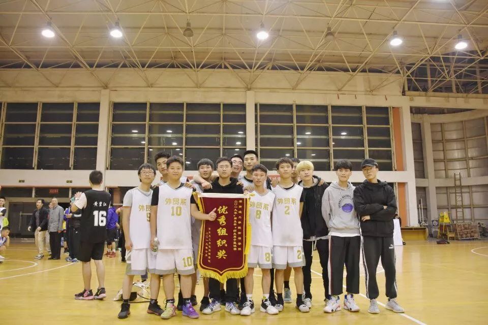 篮球赛落下帷幕,随后便举行了篮球赛闭幕式,介绍到场嘉宾和代表发言后,开始了颁奖仪式。主持人宣布我系获得了比赛第四的好成绩!并颁发了优秀组织奖的旗帜。