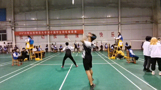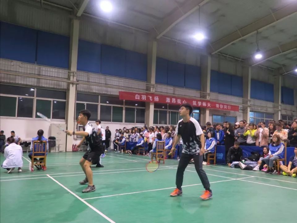 2019年10月27日晚7点,地理科学学院对战文学院的比赛正式打响。在今晚的比赛中男单选手肖辉禧,女单选手王晓佩,男双选手王晗和袁洪策,一如既往地保持了我院羽毛球队前两场火热的状态,接连发力,运用着一次次强劲有力的挥拍、灵活的转体、高技巧的扣杀不断将比赛推向高潮。
