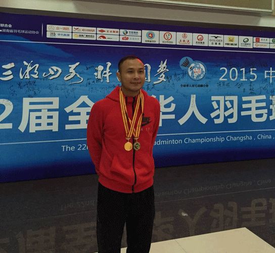 2015年第22届全球华人羽毛球锦标赛30岁男子单打冠军,30岁组混合双打冠军