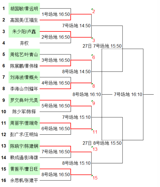 同时也恭喜以下16支队伍成功晋级机关组男子双打淘汰赛。