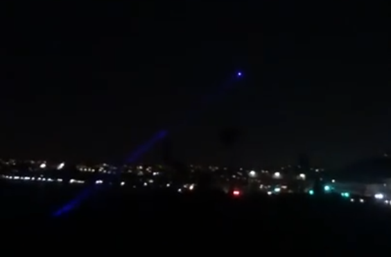 2019年10月26日,美国加州卡皮斯特拉诺海滩,数个奇怪不明飞行物向地面发射激光,犹如科幻电影的星际大战场面。