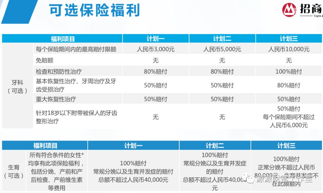 6. 中国大陆和大中华计划仅可选择4万生育,3200体检,3000和5000牙科;全球和全球除美计划仅可 选择8万生育,5500体检,5000和10000牙科。