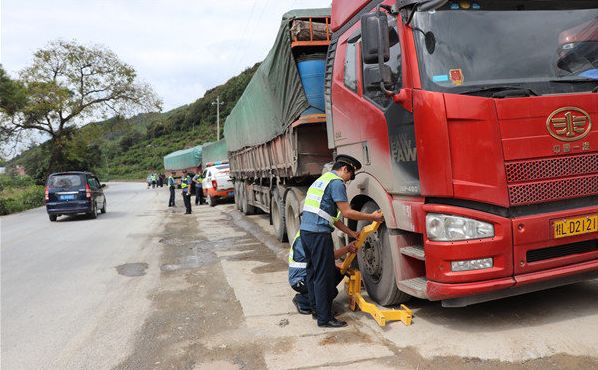 针对近期违法超载“百吨王”货车在G324国道下塘村一带停靠集结集体冲卡情况, 10月24日,百色市交通运输综合行政执法支队请右江区汪甸瑶族乡派出所支援,集中开展联合执法整治工作。执法人员通过对在G324国道下塘村路边停靠集结的货运车辆进行检查,向聚集在一起的驾驶人员了解货物装载情况,货车驾驶员均存在不予配合检查和抗法驾车逃跑的情况。经过公安民警严正制止,执法人员耐心劝说,抗法拒查情况才得以缓解。经过3个多小时的执法过程,停靠在路边的超载货运车辆全部取证完毕,并由执法人员押送至永乐治超站进行称重检测。