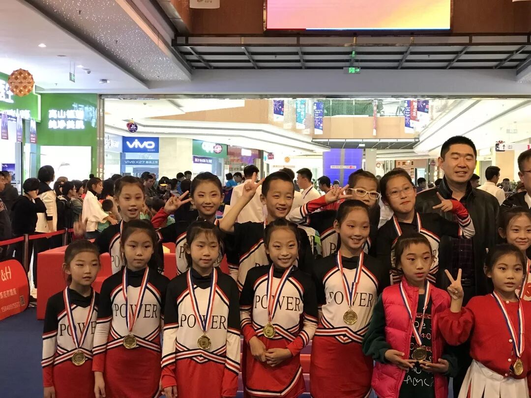 代表南金实验学校的是校健美操队队员:许书祎,赵埜泽,姜迪,刘钰菲,单睿荧,范绮萱,贾思扬,赵馨悦,孔乐鑫,韦伊,经过刻苦的训练,以最好的状态完成比赛,获得四年级组一等奖