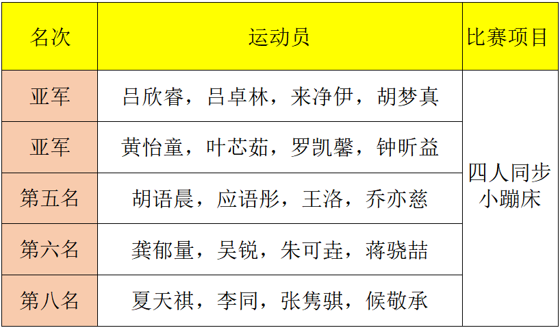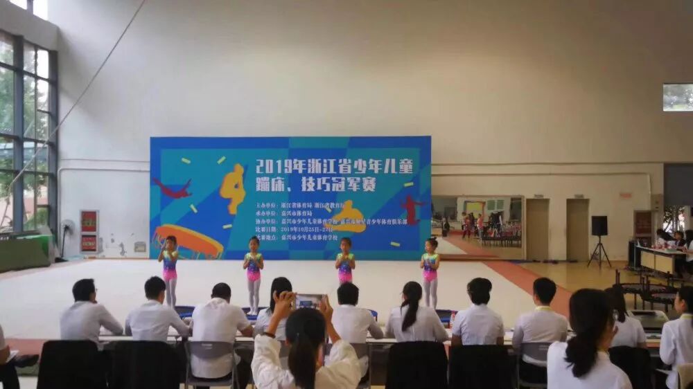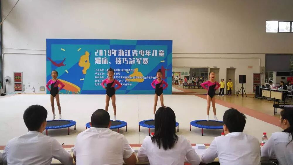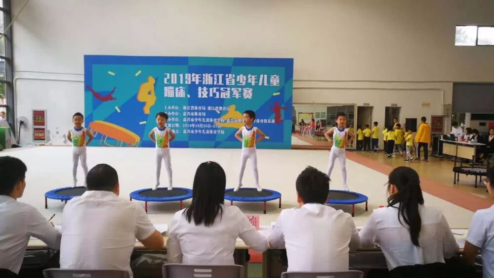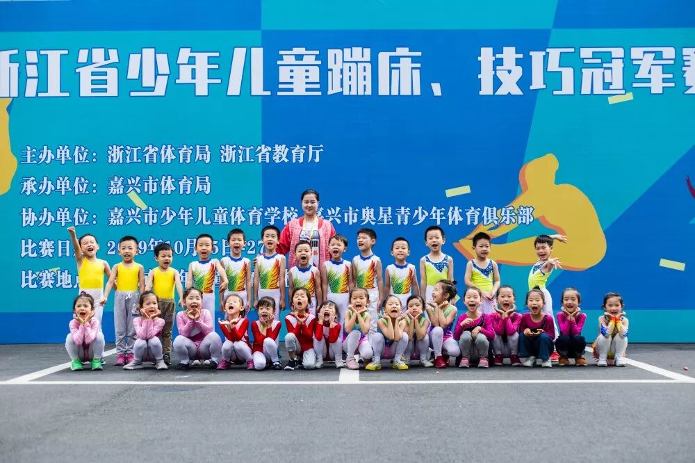 2019年浙江省青少年儿童蹦床、技巧冠军赛于10月25日-27日在嘉兴市少体校举行,本次比赛共分为大众组和竞技组。杭州西子青少年体育俱乐部(发展中心)幼儿体操队的22名小队员和预备团的10名小队员参加了大众组儿童4人同步小蹦床比赛,荣获2个亚军,1个第五名,1个第六名,1个第八名。