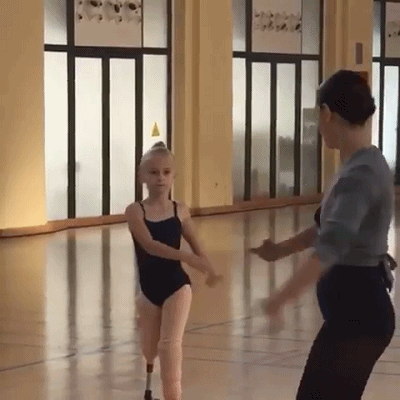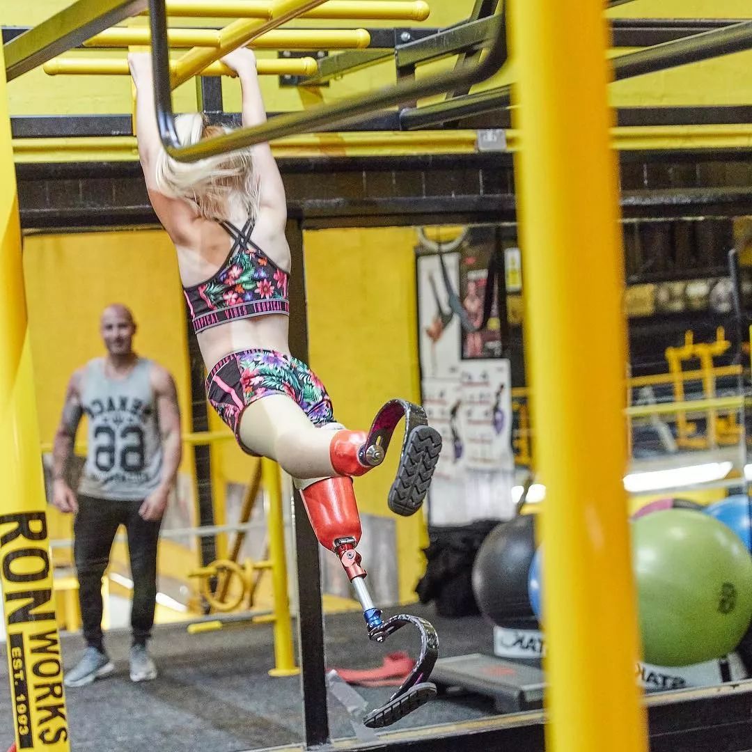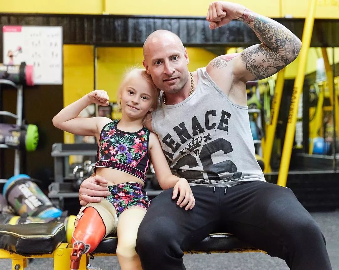 在父亲的带领下,小黛西还开始去健身房训练。在不懈的努力下,她不但学会了走路,还能跑步,快速跳跃,甚至还能翻跟头。爬梯、举重、吊环、简直是无所不能。