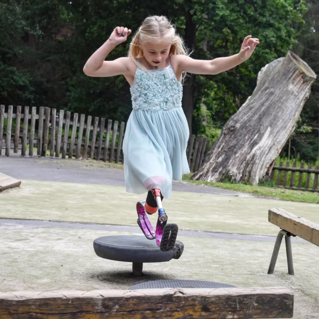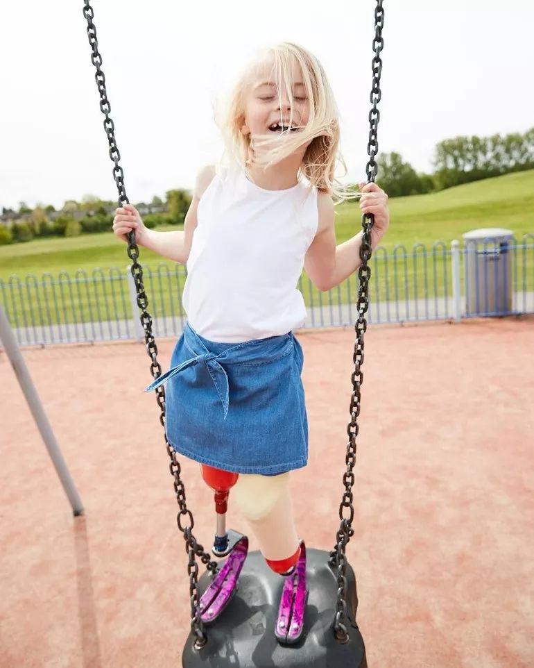 是的,年仅9岁的小黛西,是个无腿女孩,她患有先天性腓骨半肢畸形。